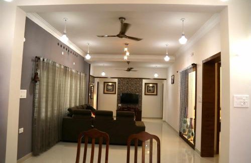 Offering a garden, Happy Stay Pulianthuruthel features accommodations in Kottayam. This property offers access to a balcony, free private parking, and free Wifi. Outdoor seating is also available at the vacation home. Featuring a terrace and mountain views, the spacious vacation home includes 4 bedrooms, a living room, flat-screen TV, an equipped kitchen, and 4 bathrooms with a bidet and a bath. Towels and bed linen are available in the vacation home. This vacation home is allergy-free and soundproof. The area is popular for walking tours, and car rental is available at Happy Stay Pulianthuruthel. Cochin Shipyard is 29 miles from the accommodation, while Ettumanoor Mahadeva Temple is 4.2 miles from the property. Cochin International Airport is 43 miles away.
