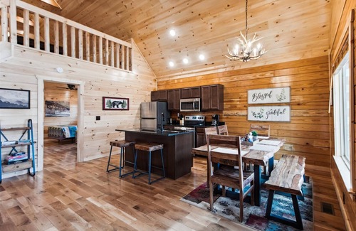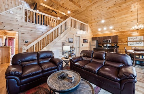 Tucked against the Great Smoky Mountains, this newly built cabin home is a wonderful place to spend time with friends and family exploring the trails, attractions or just each other’s company cooking, playing games, relaxing in the hot tub or snuggling up for a movie night on the cozy sofas watching the large screen TV. Wait, not ready for a movie? Well, then head to the loft for a game of Eight-Ball on the new pool table, or parents, show those teens what a real video game is like on the classic stand-up arcade. When coming to the Smokies, let Happy Vibes Cabin help you make Happy Memories!