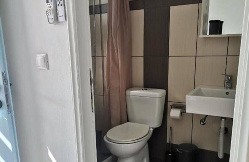 Bathroom: A modern bathroom with a shower, offering all the essentials for a refreshing start or end to your day.