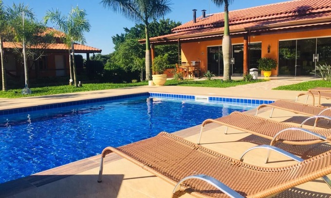 This 5 Bedrooms Cottage provides accommodation with Pool, Private Pool, Security/Safety, for your convenience. This Cottage features many amenities for guests who want to stay for a few days, a weekend or probably a longer vacation with family, friends or group. This Cottage is less than 1 km from Chacaras Primavera, and gives visitors the opportunity to explore it. The rental Cottage has 5 Bedrooms and 7 Bathrooms to make you feel right at home.