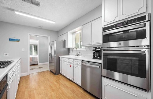 Begin your sun-soaked sojourn on the home’s spacious deck, losing yourself in the pages of a good book while the sights and sounds of the water provide the ultimate tranquil backdrop. Fire up the grill for an authentic barbecue lunch, served tableside at the outdoor dining set with seating for six. Dig your toes in the sand for a competitive game of cornhole, or break out the fishing poles and cast a line off the dock in hopes of reeling in a fresh catch just in time for dinner. Set off on your vessel of choice for a personal tour of the waterways, whether cruising the canals on a paddleboard or hitting the open water on a rented pontoon. For a change of scenery, take a quick five-minute walk to enjoy private gated beach access, perfect for soaking up the sun and surf.