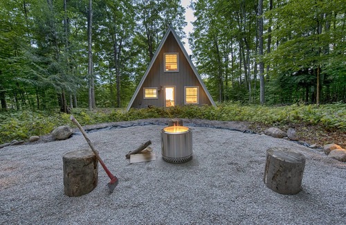 The A-frame has a large front porch overlooking the nature preserve across the street, a back deck with table & chairs, gas grill, and a firepit area with a Solo Stove.