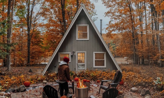 The A-frame features keyless entry. The code will be sent to you before arrival.