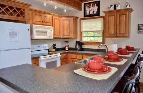 This picture-perfect cabin comfortably sleeps a group of 8.