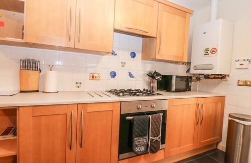 Amenities: Gas central heating. Gas oven and hob, microwave, fridge, washing machine, dishwasher. TV with Freeview, Wifi, selection of books and games. Fuel and power inc. in rent. Bed linen and towels inc. in rent. Stairgate and highchair on request. Off-road parking for 1 car. Rear courtyard with seating and barbecue. One well-behaved pet welcome. Sorry, no smoking. Shop 0.3 miles, pub and beach 0.1 miles. Note: Check-out by 9am. Note: There are two steps down into the ground-floor double bedroom. This property has a minimum stay of 2 nights. Please note the charging of electrical vehicles is not allowed at the property