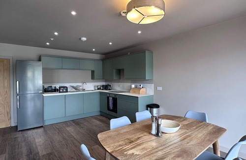 The brand-new kitchen is fully equipped with everything you need to prepare delicious meals, including a fridge freezer, dishwasher, washing machine, oven, hob, kettle, toaster, and a pod coffee machine. Both bedrooms are generously sized and feature plush king-size beds. Each bedroom comes with built-in wardrobes, full-size mirrors, smart TVs, and a desk for those who may need to catch up on work or simply write postcards. The master bedroom boasts an ensuite bathroom complete with a luxurious step-in shower.