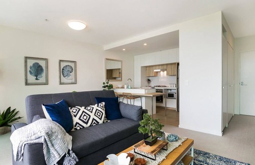 The apartment is superbly designed with an open plan layout, contemporary furnishings and cohesive decor. Floor to ceiling glass doors creates a seamless connection to the outdoors where you can take in the views or enjoy alfresco dining on your own private balcony. The designer kitchen is fully equipped with modern European appliances, stone benchtops and a breakfast bar. The spacious master bedroom boasts a luxury, plenty of storage space and scenic views.