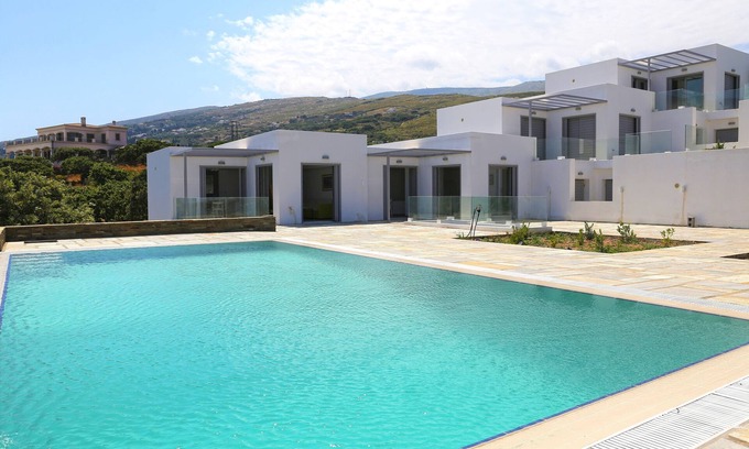 Harma Villas are minimally designed to fit the islands character by combining elements of wood and stone. The exterior setting consists of spacious paved surroundings, parking and a spacious swimming pool (10X6m) in operation normally from May till October.However the operation period can be adjusted according to guests needs.