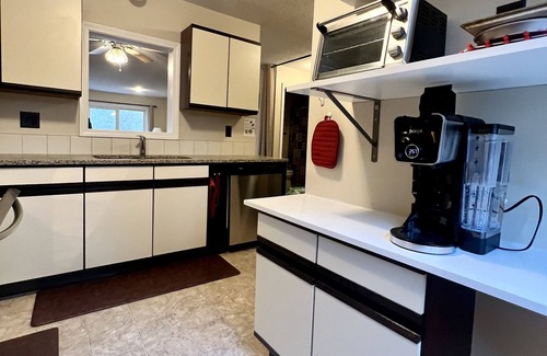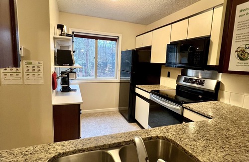 Condo facilities include: washer/dryer, full kitchen with air fry oven / induction stove, Ninja DualBrew coffee maker (pots of coffee or k-cups) full-size dishwasher, microwave, slow-cooker, etc, iron and ironing board, dining table and chairs, folding table and chairs, towels and linens, hairdryer, 49" Roku 4K HDR TV and blu-ray / DVD in the living area, 40" smart TV with Roku in the master bedroom and 32” TV with Roku in the second bedroom, free WiFi (up to 800Mbps) throughout.