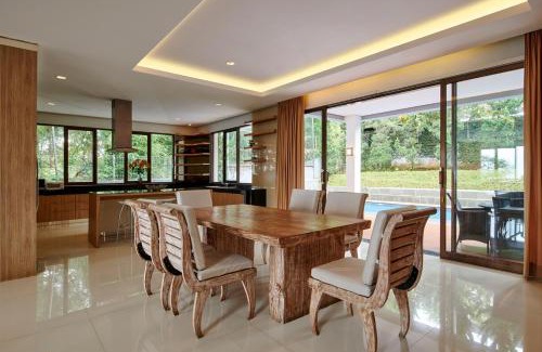 Harmony Hilltop City View Villa 4 bedrooms with a private swimming pool offers accommodations in Bandung, 3.5 miles from Saung Angklung Udjo and 5.3 miles from Gedung Sate. This property offers access to a balcony, free private parking, and free Wifi. The accommodation provides airport transfers, while a car rental service is also available. Providing a terrace and mountain views, the spacious villa includes 4 bedrooms, 3 living rooms, cable flat-screen TV, an equipped kitchen, and 4 bathrooms with a shower. A private entrance leads guests into the villa, where they can enjoy some fruit. The accommodation is non-smoking. Guests can also relax in the garden, next to the outdoor swimming pool, or in the shared lounge area. Cihampelas Walk is 5.8 miles from the villa, while Trans Studio Bandung is 6.5 miles away. Husein Sastranegara International Airport is 8.1 miles from the property.