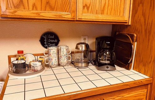 Pour a pipping hot cup of coffe, or a glass of your favorite wine while relaxing next to a warm cozy fire.