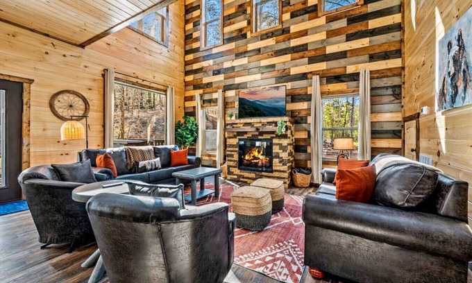 Spacious Accommodations: This cabin offers 2,500 square feet of living space, featuring three luxurious king suites that can comfortably accommodate up to 10 guests, making it perfect for your bridal party or family gatherings.