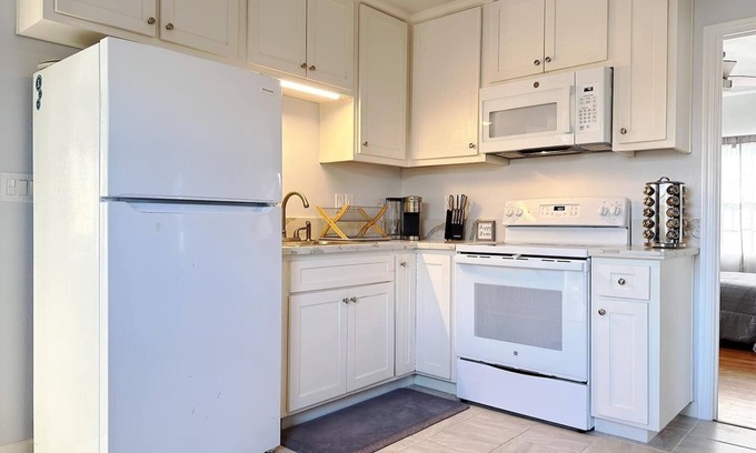 Your peaceful weekend getaway starts with this charming, comfortable house, perfect for relaxing with loved ones. It features 2 cozy bedrooms with queen-sized beds, comfortably sleeping up to 4! Discover the perfect getaway in Visalia, California with this inviting retreat, ideally located near Main Street and Mooney Boulevard. Whether you're seeking a short-term rental for your family vacation, a centrally located spot for business, or a unique event venue, this versatile space has you covered