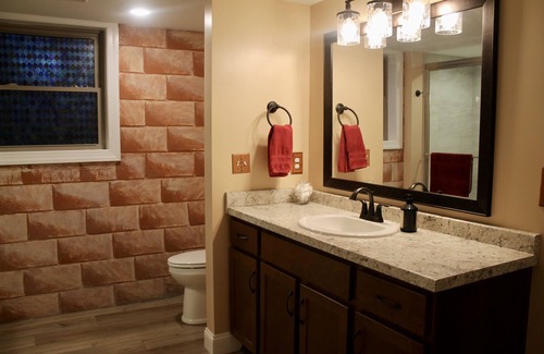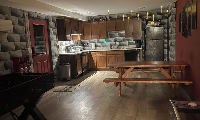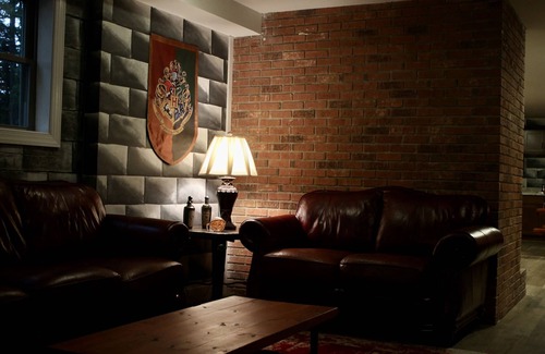 Experience the magic of Harry Potter and Hogwarts as you step inside. Beginning in the Great Hall you will be met by a knight, air hockey table, see reminders from the Goblet of Fire, and have a kitchen fit for any house elf. The astronomy tower has a bed fit for a king and queen and the dormitory has a bunk with a trundle to sleep three students. The common room boasts the wall of portraits and Dobby likes to hang out there. The prefects bathroom is outfitted offers a washer and dryer. Throughout are numerous reminders of Hogwarts that you will have to experience for yourself. As with any castle, there are odd sounds and strange noises, (this is usually explained by my family and our two dogs living upstairs;)
