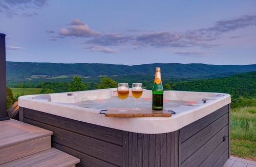Escape to tranquility in our brand-new modern cabin nestled in the heart of West Virginia, designed for an intimate getaway for two. This stunning retreat offers panoramic mountain views through expansive glass windows, flooding the space with natural light. Unwind in the luxurious hot tub, savor meals cooked on the charcoal grill, and cozy up by the fire pit under the starlit sky. Explore the surrounding acres of pristine nature and take in the serene atmosphere at a separate hilltop pavilion. Perfect for couples seeking a blend of comfort, romance, and adventure.
