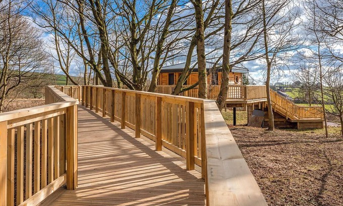With unbeatable and uninterrupted views of the Peak District countryside, Rivendale’s luxury treehouse accommodation has everything you need for a romantic holiday, including your own fantastic hot tub. This amazing treehouse has studio accommodation in the spectacular beamed open-plan living area. This one-bed, large studio-style treehouse has everything you need with a fully fitted kitchen including, wine cooler, and a washer and dryer for muddy walking clothes. With a king-size bed and beautiful decorated en suite shower, you can sit back and relax. Located in a secluded area of the resort, with an outdoor picnic area and your own hot tub, this treehouse is perfect a romantic holiday in the countryside. Pets allowed in selected accommodation only.. Rivendale Lodge Retreat is part of our Evermore Lodge Holidays Collection. In the heart of the Peak District National Park, Rivendale Lodge Retreat offers luxurious lodge and treehouse accommodation, perfect for breaks away in this beautiful part of the UK. With walks and cycle trails from the park, perfect for your furry friend to enjoy, and for those muddy paws there’s a dog wash available. Rivendale Lodge Retreat is ideal for a family holiday, the Peak District has lots to offer, with walking, cycling, horse riding, climbing, fishing and water sports, something for everyone.