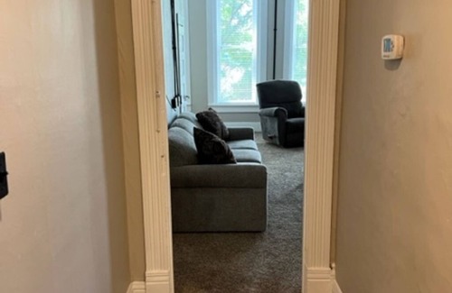 Spacious apartment located on the World's Largest Town Square. Quick walk to numerous shops and restaurants. This space sleeps 8 easily. 2 full bedrooms and a studio living room with 2 memory foam queen size pull out couches. Can sleep 2 more on a the futon. Full kitchen and on-site laundry. 2 fully remodeled bathrooms. Great Wi-Fi. Enjoy your stay with friends or families 15 minutes from Lake Rathbun. Self check in with key code.
