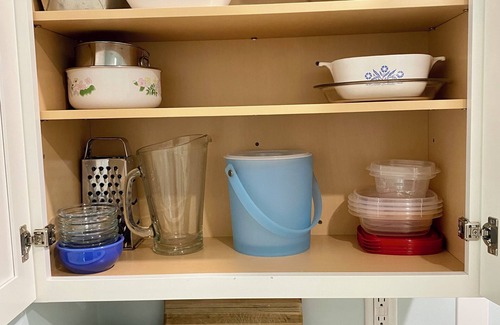 Two room private apartment - one room has a full size bed and seating area, the other room has a bath with shower and kitchen with dishwasher, 4-burner glass topped range/oven, refrigerator with freezer and ice maker, 4-cup coffee maker, toaster, blender, dishes, pots, pans. A small counter with stool seating is in this area and could be used for dining or working. Coffee, tea and a few snacks, basic cooking spices provided.