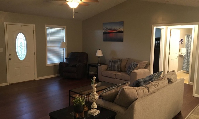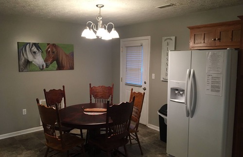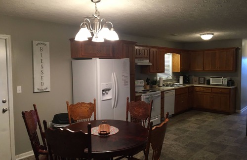 Nestled between Campbellsville and Columbia this country property is the perfect place for a getaway or somewhere to rest and relax while passing through. Campbellsville University and Lindsay Wilson College are 6 and 17 miles away respectively. Located at 755 Hatcher Rd. Campbellsville, KY 42718 the house is less than 5 miles from Green River Lake State Park and 17 miles from Holmes Bend Marina. This property features three bedrooms and two bathrooms with beds to sleep up to 8 people. There is also a large front and back yard perfect for the kids to play in while you relax on the porch!