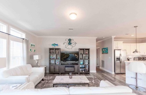 The home has 3 bedrooms and 2 baths, with plenty of space for everyone to spread out or be together. This house has everything you could possibly want: a hot tub, pool, access to a dock with a boat-slip on the river just steps from the back door! Option for 4-seater golf cart rental if available.