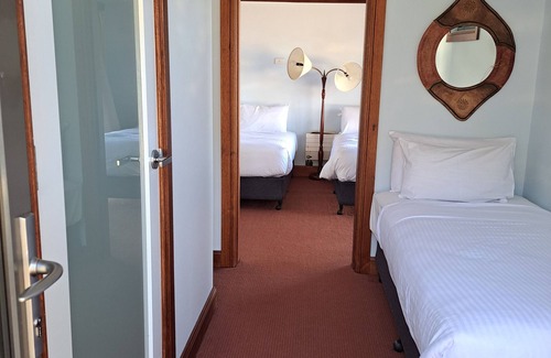 Exclusive use of the lodge that sleeps 14. The 3 story lodge has three bedrooms, two king, one twin with a large loft with 2 single beds. Two new ensuite bedrooms with 3 single beds in each add 6 extra beds. The lodge has 3 lounge rooms, 2 bathrooms, well-equipped kitchen, dining room, wilderness views and a 4+ star luxury rating. The new games room is across from the lodge next to the Hopera house and fire pit.