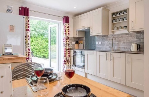 The spacious, light and airy accommodation is beautifully decorated and furnished with a calming country style throughout. Cleverly designed, the open plan living/kitchen/dining room has double doors to the garden so you can cater at home and dine in the fresh air or at the kitchen table, with comfy sofas and a chair at the far end of the room for relaxation. A handsome king size bed takes pride of place in the bedroom where there’s ample room for you to unpack and unwind, and the attractive bathroom has a large shower cubicle and natural light.