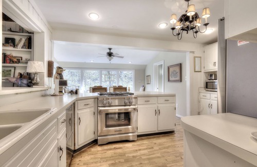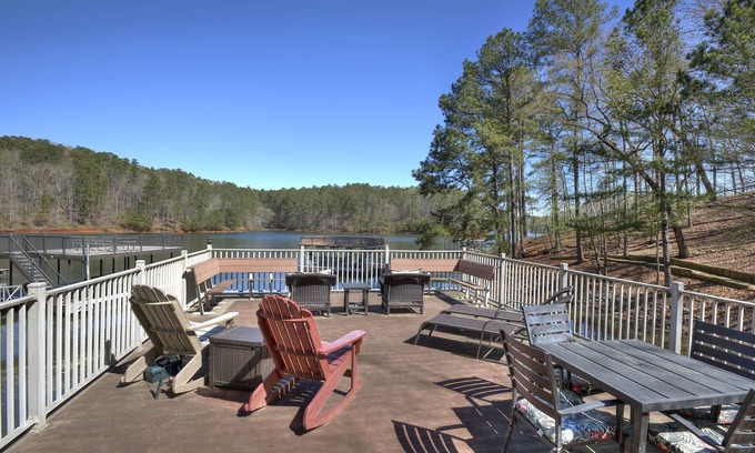 Relaxation starts on the front porch where you can rock on chairs while watching the resident deer feast on the green grass. Then enter Hattiway a fully furnished lakefront home located in a secluded cove on Lake Allatoona that will comfortably sleep 8-10.