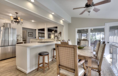 The eat-in kitchen and breakfast bar inspires conversation while preparing meals large or small for every family gathering. Our wooden beamed family room is a great place for watching movies or enjoying the game table.