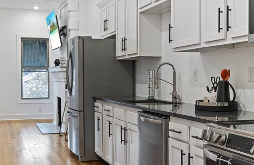 NEWLY renovated in the heart of historic Germantown! Located just above Haucks Bar (Opening May 2022) with high walkability to the many amazing bars, restaurants & entertainment options in this neighborhood undergoing a major revitalization! This well-appointed modern apartment offers two bedrooms & a pull-out sofa that comfortably sleep 6-7 people, a full kitchen, TV in every room, convenient in-unit washer/dryer, private entry & reserved off-street parking.