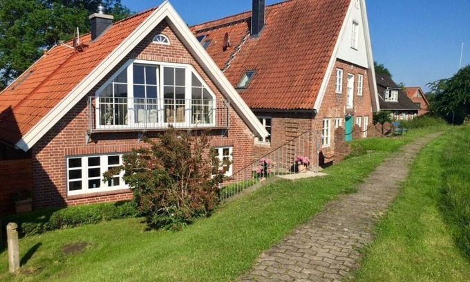 Wonderful holiday home directly on the Oste River with panoramic views over the river landscape. Very close to the Elbe and the North Sea (Otterndorf 5 km, Cuxhaven 28 km)