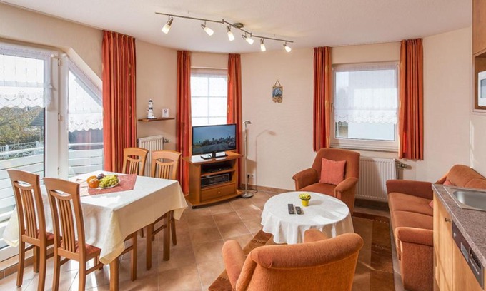 Haus Dünenglück Whg. 23, Teilseesicht is located in Cuxhaven, just a 6-minute walk from Duhnen Beach and 5 miles from Alte Liebe Harbor Platform. The property is around 29 miles from Stadthalle Bremerhaven, 30 miles from Bremerhaven Central Station, and 4.4 miles from Central Station Cuxhaven. The apartment features both free Wifi and free private parking. Featuring a balcony and sea views, the apartment includes 1 bedroom, a living room, cable flat-screen TV, an equipped kitchen, and 1 bathroom with a shower. Guests can enjoy a meal on an outdoor dining area while overlooking the quiet street views. This apartment is allergy-free and non-smoking. Guests at the apartment will be able to enjoy activities in and around Cuxhaven, like hiking. Lighthouse "Dicke Berta" is 10 miles from Haus Dünenglück Whg. 23, Teilseesicht, while Havenwelten Bremerhaven is 29 miles from the property. Bremen Airport is 67 miles away.