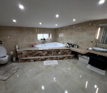 Haus mit Pool Großschönau is a recently renovated villa in Großschönau where guests can make the most of the indoor pool and garden. This property offers a private pool, free Wifi, and free private parking. Guests have access to a sauna and hot tub. The air-conditioned villa consists of 5 bedrooms, 3 living rooms, a fully equipped kitchen with a dishwasher and a coffee machine, and 3 bathrooms with a hot tub and a hair dryer. A flat-screen TV with streaming services, Xbox 360, and game console, as well as a CD player are available. There's also a seating area and a fireplace. You can play billiards and table tennis at the villa, and bike rental is available. An indoor play area is also available for guests at Haus mit Pool Großschönau. Zittau Goerlitz University of Applied Sciences is 7.6 miles from the accommodation, while Zoo Goerlitz is 28 miles from the property. Dresden Airport is 69 miles away.