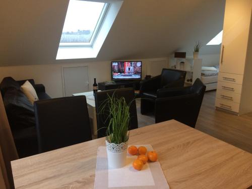 There's a sun terrace and guests can use free Wifi and free private parking. Featuring a balcony and garden views, the spacious apartment includes 2 bedrooms, a living room, satellite flat-screen TV, an equipped kitchen, and 1 bathroom with a shower. Towels and bed linen are offered in the apartment. The property has an outdoor dining area. For guests with children, Haus Willi - kleine & schnuckelige Ferienwohnung in Ortenberg mit WLAN Balkon Parkplatz - neu & sauber & gemütlich features a baby safety gate and a children's playground. Guests at the apartment can enjoy cycling and hiking nearby, or make the most of the garden. Frankfurt Airport is 43 miles from the property.
