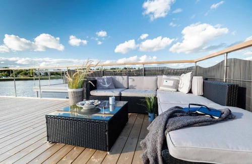 Hausboot Aegir für 5 Pers mit Dachterrasse in Schleswig am Ostseefjord Schlei is located in Schleswig-Flensburg District. Hausboot Aegir für 5 Pers mit Dachterrasse in Schleswig am Ostseefjord Schlei provides accommodation, featuring Security/Safety, Wellness Facilities, Fireplace/Heating, among other amenities. This Boat Rental features Security/Safety, Wellness Facilities, Fireplace/Heating, to make your stay a comfortable one.