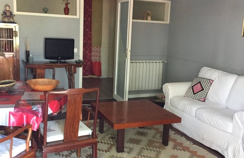 A charming and quit flat with a living room and kitchen, a bedroom, a hall and a bathroom. Fully equipped and harmoniously decorated. It also has a small veranda to enjoy the sun, the bf or a drink.