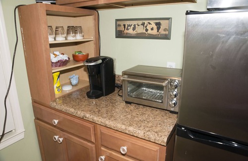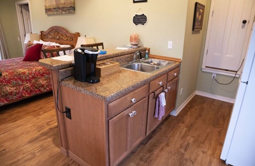 The Guesthouse Deluxe Cottage/Loft is recently remodeled. The Cottage is on the ground level with private entrance and the quaint one room Loft is on the second floor with a private outdoor entrance. The Guesthouse is located at Starlight Ridge Woodland Retreat set in a soothing, peaceful woodland landscape, beautifully decorated. Both units have efficiency kitchens, eating bars, sitting areas, dining areas, spacious closets and full baths. The Cottage has a queen bed and bathtub/shower. The Loft has two twin beds with a small shower. The price per night includes complimentary of fresh homemade muffins, a selection of teas, coffee, condiments. Wellness services are available by appointment.