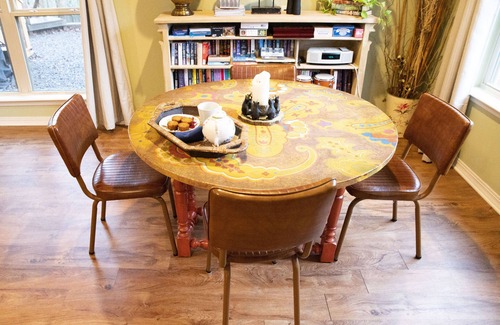 Guests are invited to explore the surrounding woodland landscape with rustic flower gardens, vegetable garden, labyrinth, outdoor fireplace and many outdoor sitting areas.