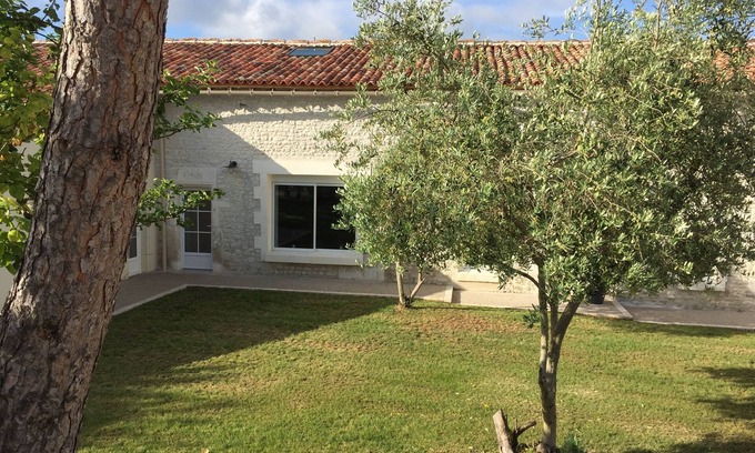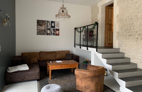In the heart of the Charente countryside, in a 17th century farmhouse, recently renovated and full of charm, this accommodation of 130 m2 can accommodate 6 people in 2 bedrooms (one with 160 bed and the other with 4 beds 90) , but can receive up to 12 people during the day (large dining room).