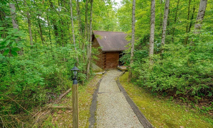 The illuminated path down seventeen stairs and through the forest guides you to Havenridge, a secluded romantic log cabin designed for two guests. It boasts a prime location, just a short drive under five minutes from Old Man's Cave, Cedar Falls, and Ash Cave.