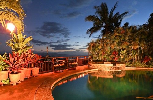 Beneath the rising slopes of Haleakala, enjoy floating in the pool beneath the star-filled sky as there are few lights in this area to distract you from your paradise.