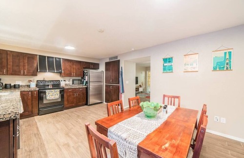 This beautifully curated home features a range of amenities designed for your comfort and convenience. Enjoy private access along with seamless self-check-in for a hassle-free experience. The main bedroom boasts a luxurious en suite spa-like shower and a king-sized bed, complemented by two additional bedrooms with queen-sized beds—perfect for accommodating your wedding party. Modern conveniences such as smart home features, universal charging docks, and a large kitchen enhance your stay. Plus, the relaxing backyard and shared community pool provide an inviting space for post-wedding relaxation.