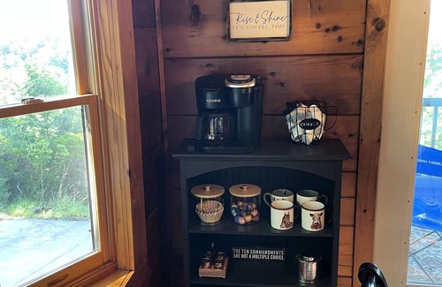 Scenic Views: Breathtaking, and uninterrupted mountain vistas. Watch the sunrise with a cup of coffee or unwind with a glass of wine as the sun sets and if you listen carefully, you will hear the peaceful sounds of the waterfall just below the cabin!
