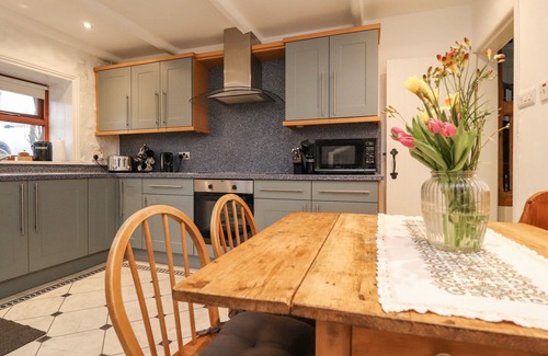 Amenities: Oil central heating with woodburner and electric stove. Electric oven and hob, microwave, fridge, freezer, washer/dryer, dishwasher, TV with Freeview, DVD, CD/radio, WiFi, selection of books. Fuel, power and starter pack for 1 night for stove inc. in rent. Bed linen and towels inc. in rent. Travel cot and highchair on request. Off road parking for 3 cars. Bike storage. Enclosed lawned garden with patio and furniture. Two well-behaved pets welcome. Sorry, no smoking. Shop 3 miles, pub 5 mins walk. Note: Both staircases are wooden with open treads, not steep but care should be taken when accessing accommodation. Note: AGA in the kitchen is disconnected. Note: This property is next to a road, therefore some associated noise will be heard.