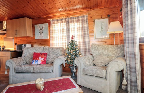 Amenities: Electric central heating with electric fire. Electric oven, ceramic hob, microwave, fridge/freezer, TV with Freeview, DVD, WiFi, selection of books, games and DVDs. Fuel and power inc. in rent. Bed linen and towels inc. in rent. Private decked veranda and shared lawned area with furniture. Off road parking for 2 cars. Strictly one well-behaved dog welcome. Sorry, no smoking. Shop 5 mins walk, pub 1 mile. Beach 2 miles. Note: Limited WiFi signal. Please note: property allows a maximum of 4 people including any infants
