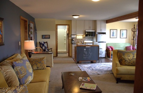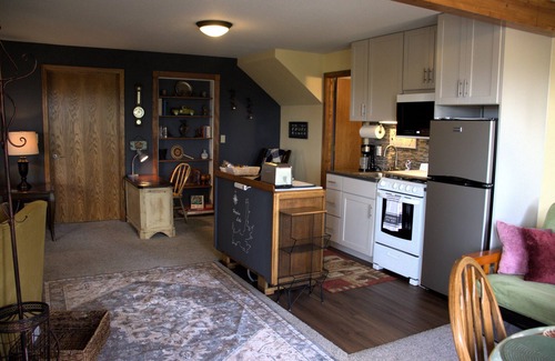 Step through the charming cottage garden and be welcomed by breathtaking views of the mountains, prairie, and Hayden Lake—visible from your private deck and throughout every room of your 800 sq. ft. apartment. This cozy retreat features a private bath and kitchenette, thoughtfully stocked with all the essentials for your convenience.