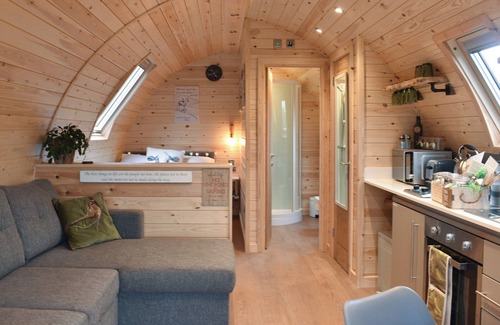 Watch the sun rise and star gaze all evening from this beautiful pod set in a picturesque countryside location.. All on the Ground Floor: