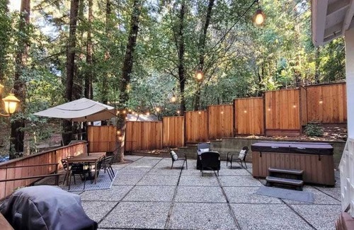 This newly renovated home is named after our dog, Hazel. It's nestled up on a hill among two dozen redwood trees and features modern river-inspired decor, with plenty of games and puzzles to keep you occupied.