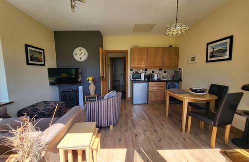 The accommodation offers a homely environment. It is perfectly spacious for one or two people and provides for a relaxing stay. It has a comfortable bed with en suite attached. Although the kitchen is compact it allows you to cook simple meals. There is a double portable electric hob, saucepans, frying pans and utensils, fridge and a microwave/oven/grill combo. Breakfast is supplied including bread, butter, an assortment of jams, tea, coffee and milk as well as a selection of breakfast cereals.