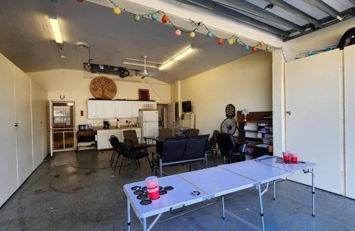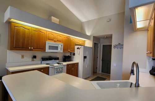 The two guest rooms have Queen beds and bunk beds. This home accommodates 8 people very comfortably! Fully equipped kitchen with coffee maker and all cookware you will need. There is also a full size indoor laundry room. There is additional parking next door for trailers and vehicles.
