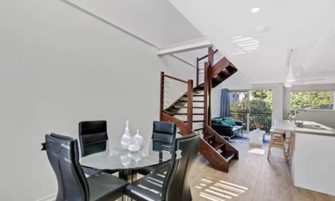 🏖️With soaring high ceilings, rich timber floors, and an open-plan living space, this stylish and airy apartment invites you to relax, recharge, and explore. Whether you're sipping your morning coffee on the balcony, unwinding with a book, or cooking up a feast in the fully equipped gourmet kitchen, every moment here feels like a holiday. ✨ What You’ll Love: